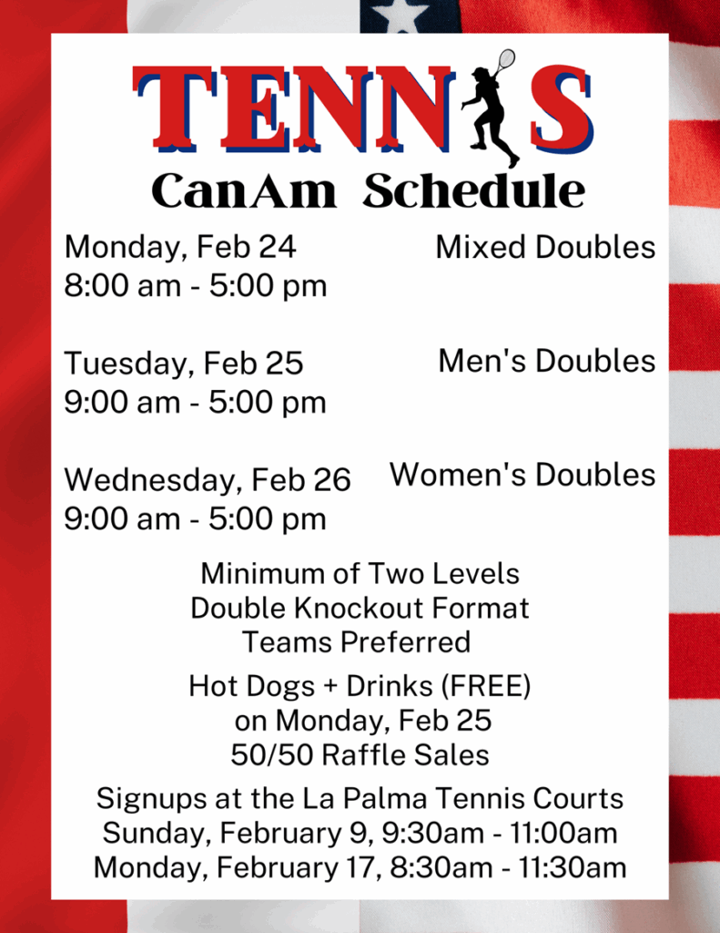 We also post Tennis Event information on our website, bulletin boards throughout the resort (La Palma breezeway, Satellite laundry rooms and Clubhouses) and in the monthly news magazine The ORACLE.