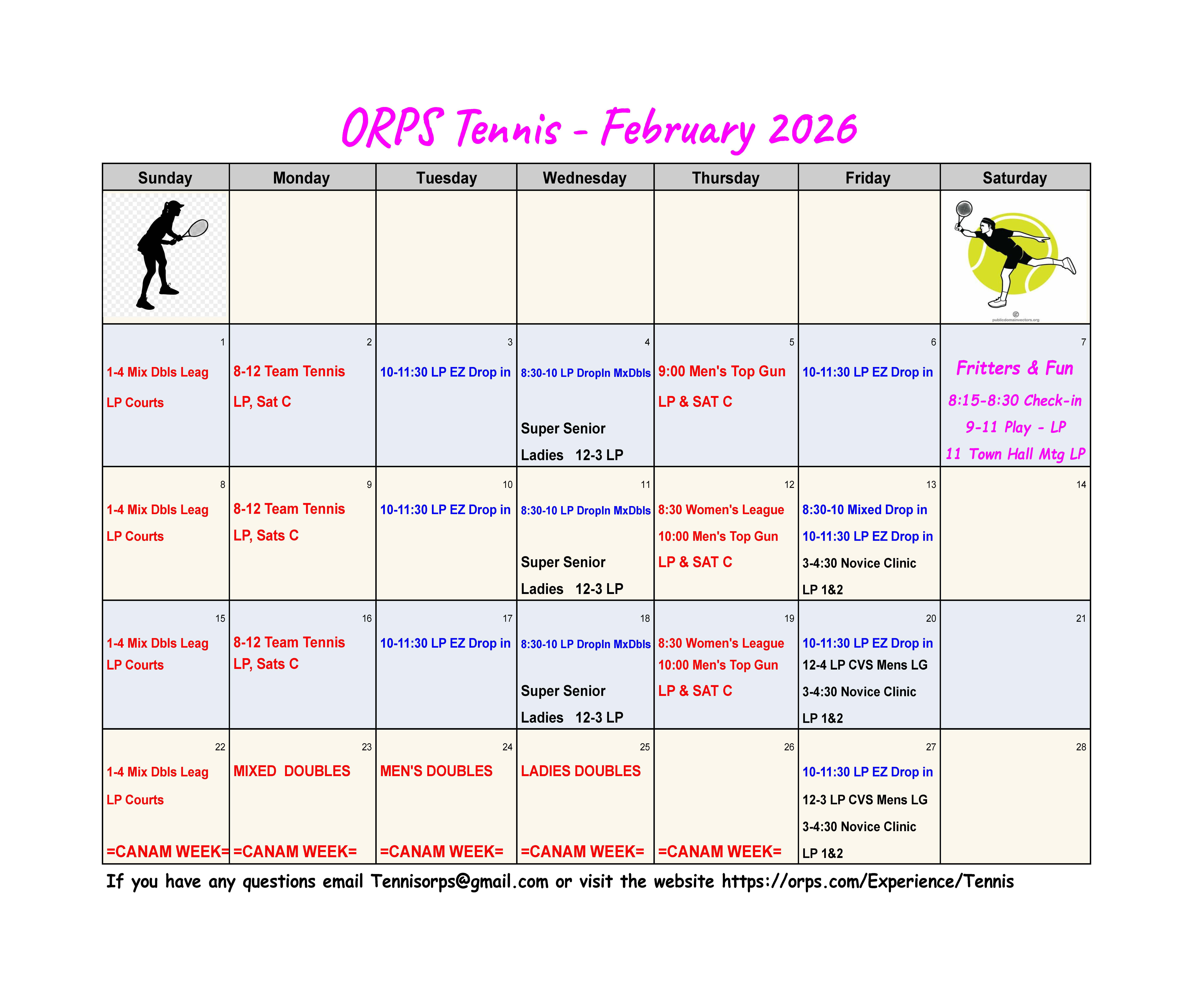 Check out what’s happening now on our ORPS Facebook Tennis Group site:
