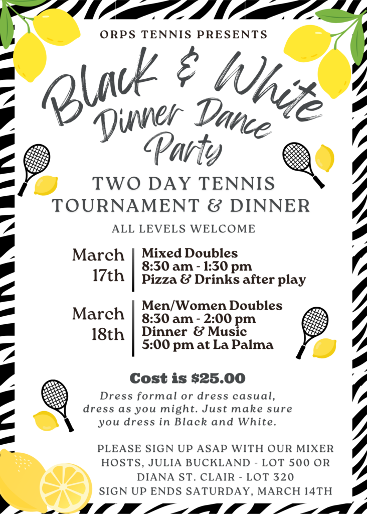 For those who just are looking to have some fun, we host monthly tennis social activities and “mixer” tournaments.