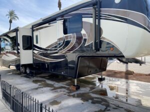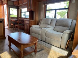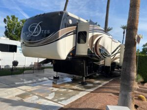 2016 DRV Mobile Suite. Please refer to the build sheet for details on this unit. It features a fiberglass roof, ideal for desert conditions.