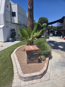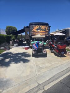 Description: Lot 1024 (Lot Only)Great lot across from Satellite E.Satellite hot tub has all new equipment and now is a saltwater hot tub.This lot is hedged and bricked with desert scape and artificial turf.Comes with golf cart, outdoor patio furniture, dinette set, barbecue and garbage / recycle bins.Does not include Motorhome or HarleyRented from January - May next season.