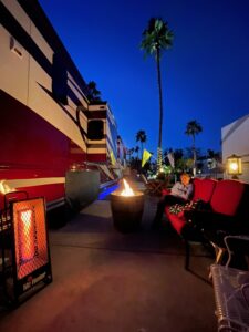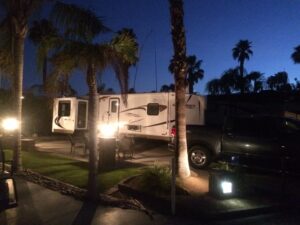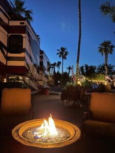 Interior resort space that blocks most wind and it’s quiet, so enjoy leaving your windows open. Only 3 spaces to the starter shack, practice area, and El Saguaro’s Singo, pickle ball, corn hole, and pool, an easy walk to & from happy hour, and a soak in the spa or shower. The El Saguaro Clubhouse has activities (quilting room, dance classes, cookie class) and entertainment making this lot the place to be. Large hedge at the rear of the lot and a smaller hedge on the west side. This wonderful lot receives morning sun and afternoon shade.