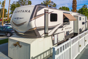 Enjoy a Palm Springs paradise experience in this forty-foot Fifth Wheel at Outdoor Resort Palm Springs (ORPS).