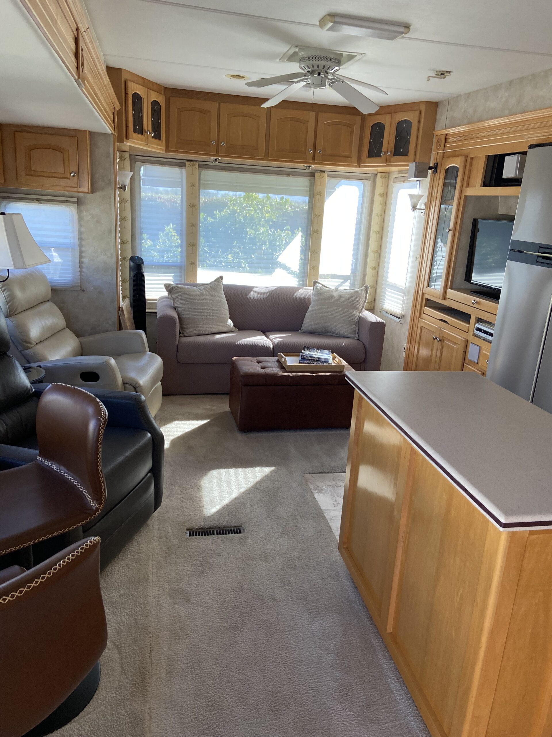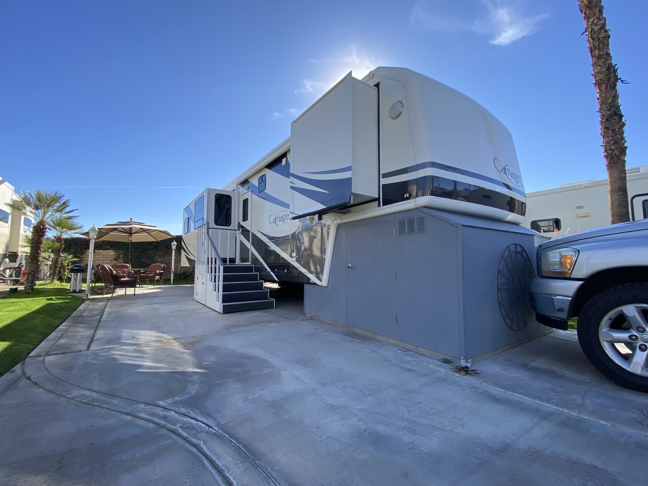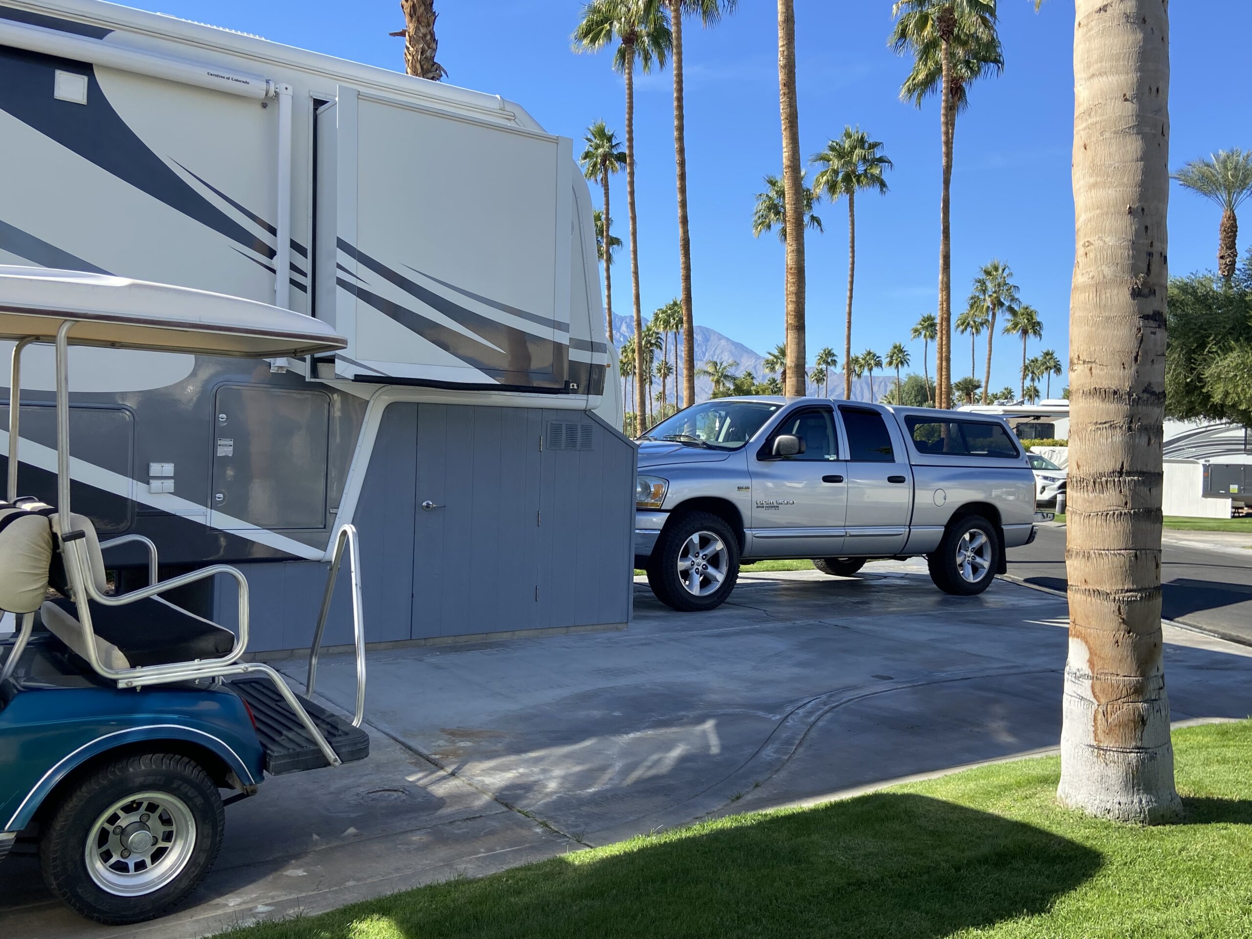 Description: This lot offers a quiet mountain and desert view, featuring a well-maintained 2004 Carriage 5th wheel trailer located along the desert wall, just a short walk to the Satellite “C” pool and facilities.The turn-key package includes Lot 267, the 5th wheel with a doghouse front storage, all interior and exterior furnishings, and a 1992 Club Car golf cart.If you are looking for a move-in-ready option that allows for a seamless and affordable transition into one of Palm Springs' premier desert lifestyle RV communities, this is a fantastic opportunity!