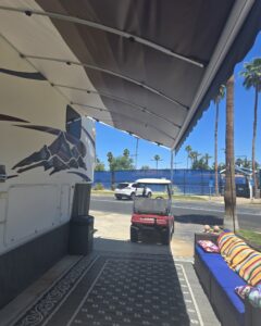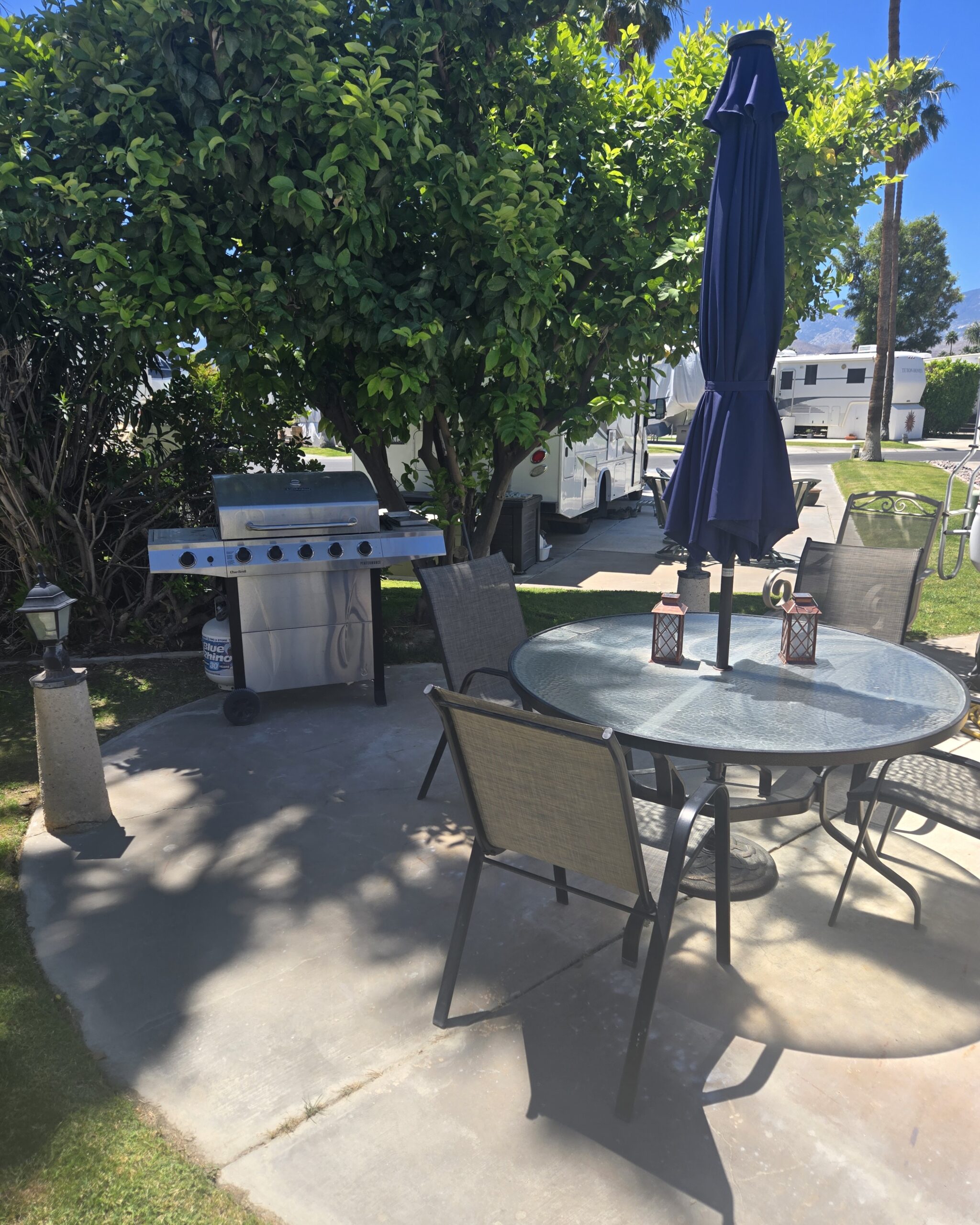 Comes with outdoor furniture including dinette set with umbrella, Barbecue, beer fridge, Flat screen tv, a Myers lemon tree and golf cart.