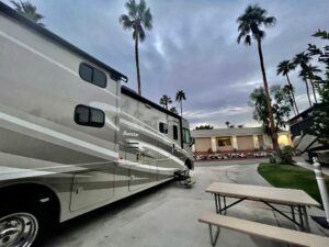 Beautiful 35' Motorhome with 3 slides!Located Near the Resort Entrance across from La Palma Clubhouse, restaurant, swimming pool & jacuzzi, Tennis Courts, and Convenience Store.