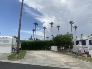 Beautiful, spacious lot close to the main entrance for convenient access in and out. You are steps away from La Palma Clubhouse, Satellite C, restaurant, beauty salon, convenience store, fitness center, pools & spas. Lot has a dining table and patio furniture.