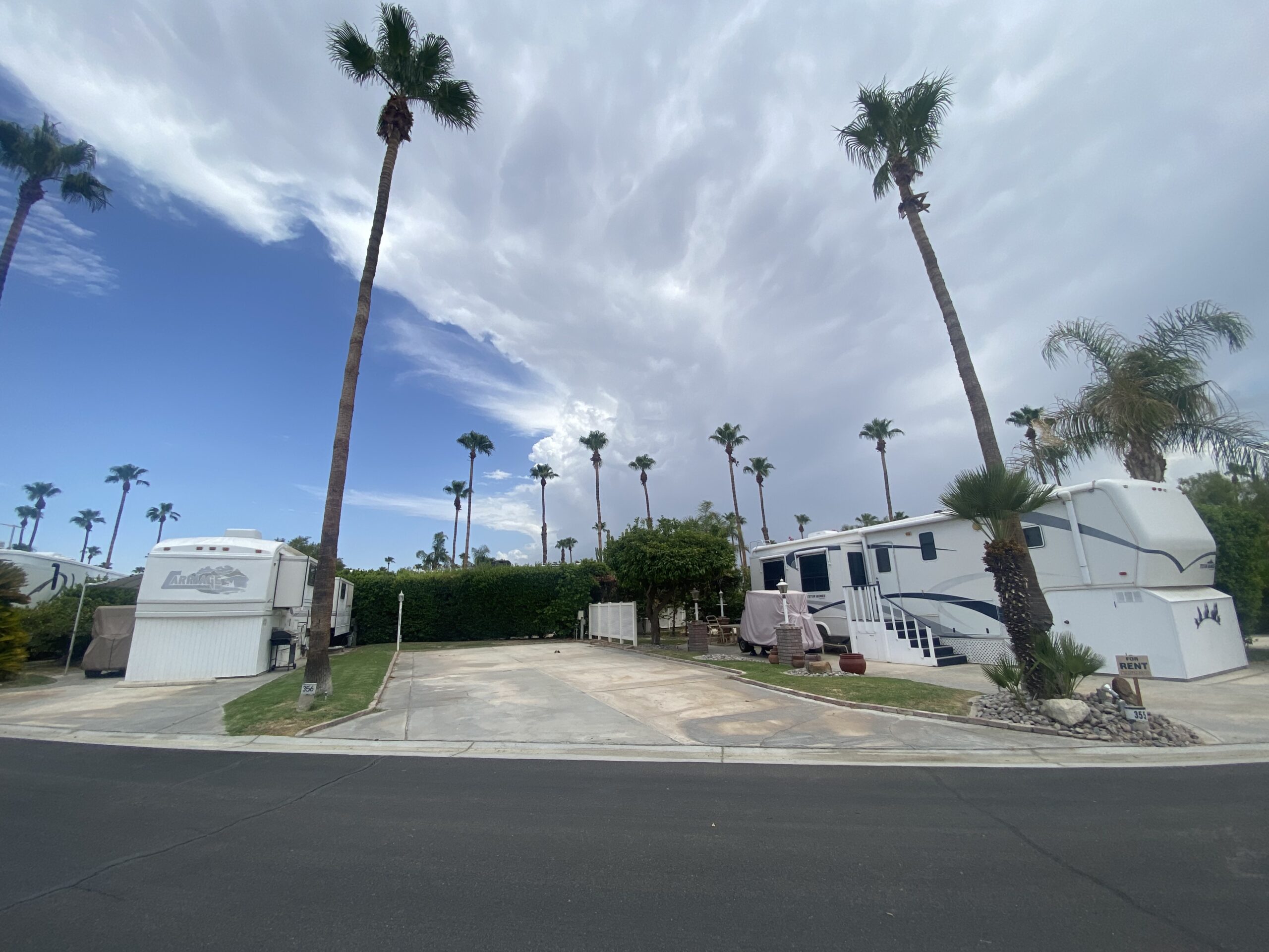 Beautiful, spacious lot close to the main entrance for convenient access in and out. You are steps away from La Palma Clubhouse, Satellite C, restaurant, beauty salon, convenience store, fitness center, pools & spas. Lot has a dining table and patio furniture.