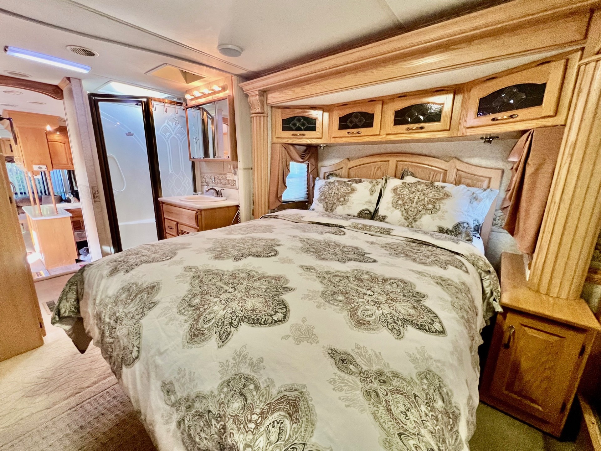 WELCOME TO OUTDOOR RESORT PALM SPRINGS IN THIS WELL KEPT 1 BEDROOM RV COMPLETE WITH LARGE PATIO PLUS A GOLF CART, THE LIVING AREA IS SPACIOUS WITH SOFA BED, LOUNGE CHAIR, DESK & DINING TABLE ALONG WITH KITCHEN AREA WITH FULL SIZE FRIDGE, STOVE, SINK & LOTS OF STORAGE. STEP UP TO THE MASTER BEDROOM WITH BUILT IN CABINETS, CLOSET, BATHROOM & SHOWER PLUS STACKED WASHER/DRYER. OUTSIDE THE EXPANSIVE PRIVATE PATIO HAS A BARBEQUE, TABLE & CHAIRS, COUCH PLUS TWO UMBRELLAS. PROPERTY IS CLOSED TO POOL, GYM, JACUZZI & CLUBHOUSE.