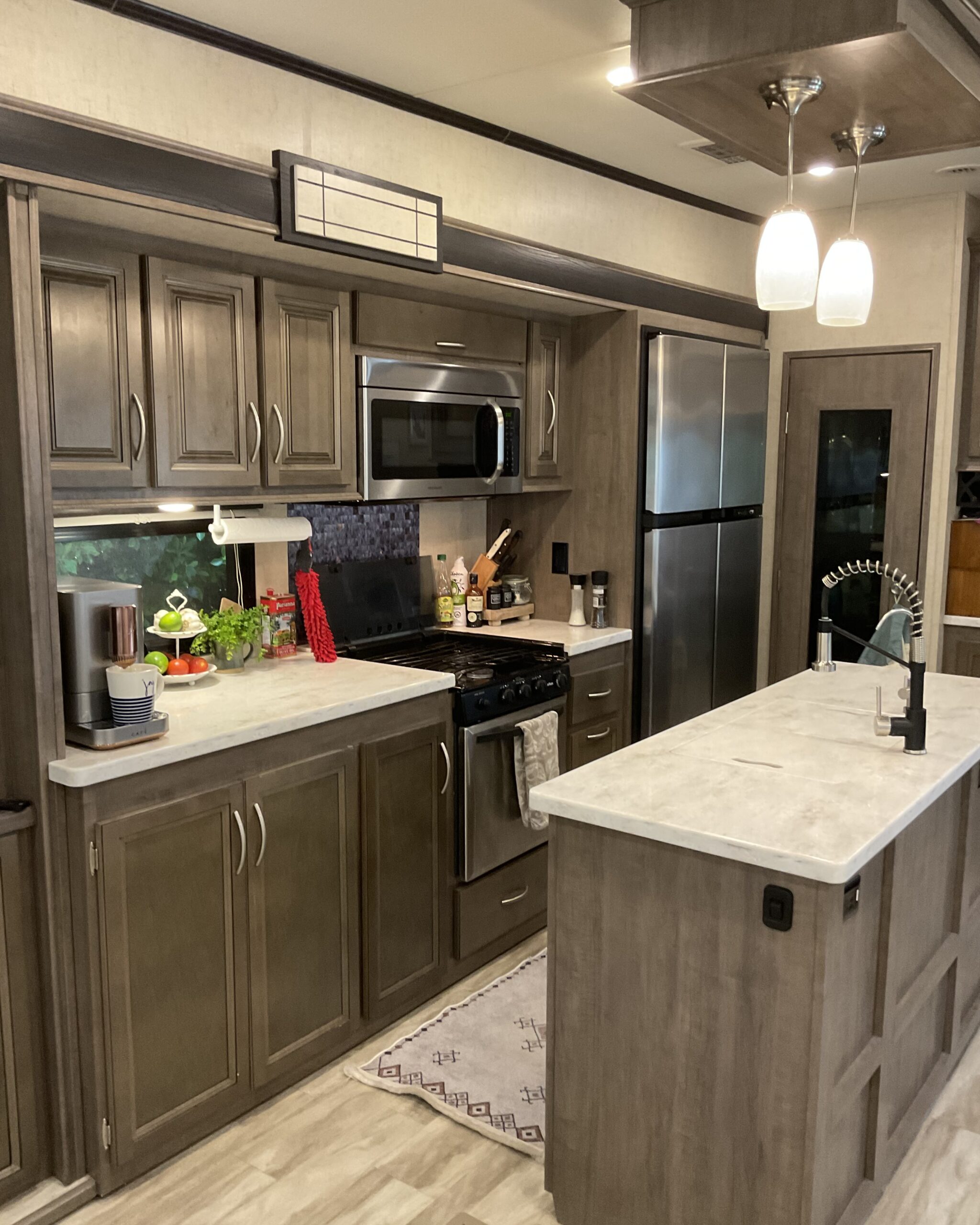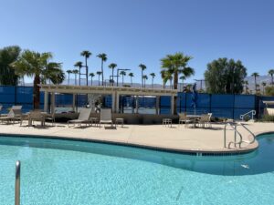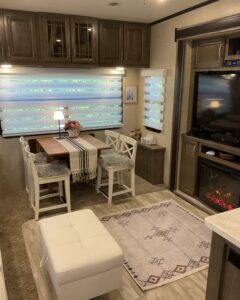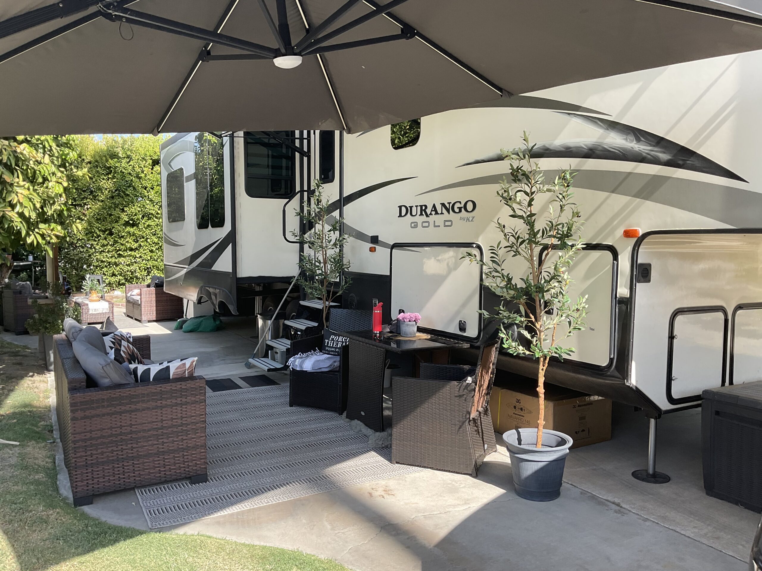 Lot 459, a short walk to La Palma clubhouse. Extra high hedges on the side and back of the trailer provide unmatched shade and privacy. In season, enjoy grapefruits, oranges, and lemons right out your door on the lot. Trailer has a proper king-size bed in the master bedroom and a queen-size sofa bed in the living room. Included in the trailer is a fully automated espresso coffee machine, an ice maker, internet, a printer, a fully equipped kitchen including a full-size fridge/freezer, and a well-stocked spice rack. Entertain outside in either a front sitting area or a back sitting area, depending on your privacy preferences. BBQ and all BBQ utensils included. There are two 20lb tanks for the BBQ and three 30lb tanks for the furnace and hot water. Please refill any as you consume them.