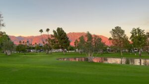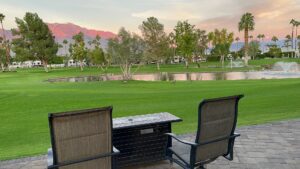 Has amazing west-facing views of the San Jacinto Mountains with forever sunset views.