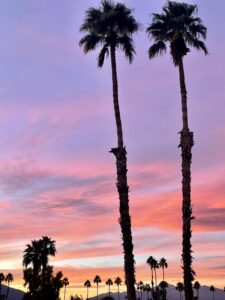 - Bougainvillea hedge & decorative palm trees