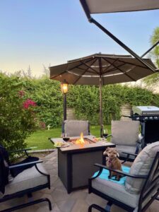 Enjoy the friendly community with great neighbors, and take advantage of this incredible value for such a well-appointed and private lot. Included with this lot is a fire table with 4 comfortable swivel chairs, a wrought iron table with 4 chairs, a propane BBQ and 2 umbrellas with stands.