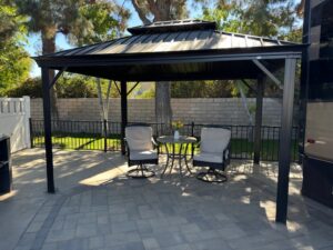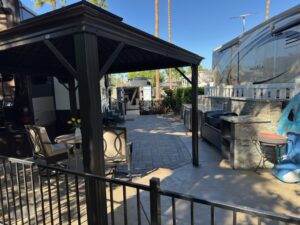 Lot 924 is conveniently located near the El Saguaro clubhouse and just steps away from Satellite F, which offers laundry facilities, a pool, a spa, and a tennis court. This ultra-private lot is surrounded by mature hedges and trees, ensuring privacy on a quiet street. The deep lot features an outdoor kitchen equipped with a fridge, dishwasher, and BBQ, along with a large gazebo and a pet-friendly fenced area that includes a designated dog relief spot. It’s the perfect place for the whole family, including your pets, to relax and unwind. Planned improvements for 2024 include a kitchen upgrade, gazebo enhancements, new pavers, epoxy coatings, and lot expansion. This property is situated in a friendly, serene neighborhood.